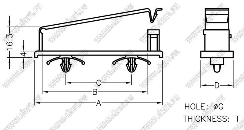 Каталог > Фурнитура для электронных устройств > Крепеж проводов и кабелей > Зажимы для плоского кабеля > с фиксацией в панель на защелке > FCT серия > FCT-5