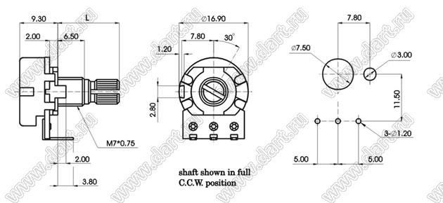 Каталог > Электронные компоненты, радиодетали > Резисторы > Резисторы переменные (потенциометры) > Роторные > 16 мм > R1610N-4C3-B103