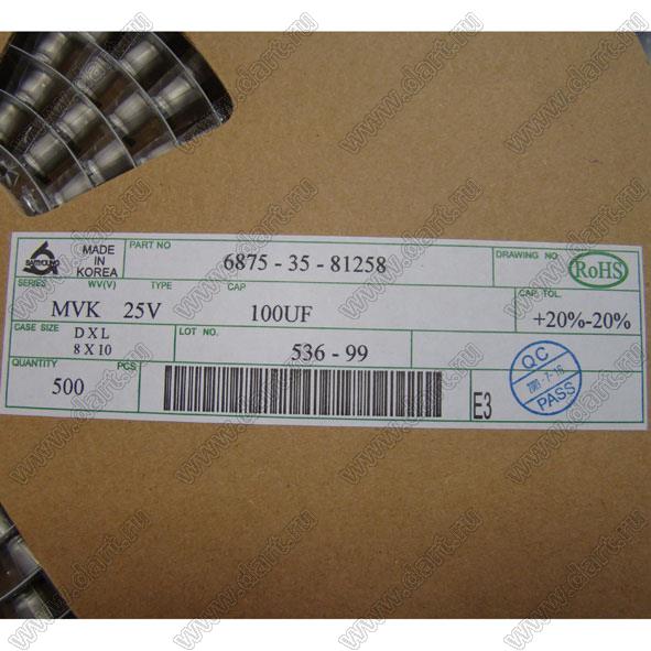 алюминиевый электролитический ЧИП конденсатор; 100мкФ; 25В; 8х10,5мм; -40...+105°C