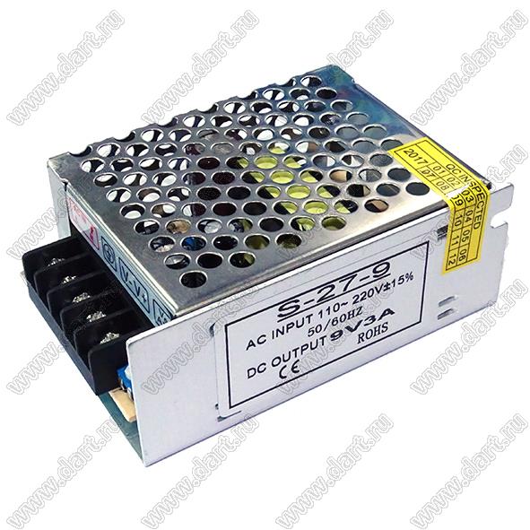 блок питания встраиваемый; P=27Вт; Uвх=110-220В; Uвых=9В; Iвых=3А; 85x58x34мм
