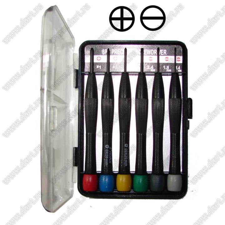 Набор электронных отверток (6 штук, плоские и крестовые наконечники); сталь