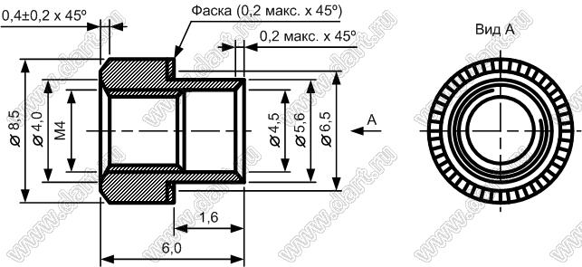Втулка резьбовая развальцовочная (бонка) сквозная; резьба M4; D=8,5мм; H=4,0мм; сталь оцинкованная