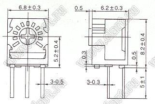 Каталог > Электронные компоненты, радиодетали > Резисторы > Резисторы подстроечные > Резисторы подстроечные для выводного монтажа > 3323 серия > 3323V-254 (250K)