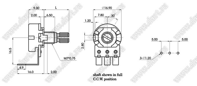 Каталог > Электронные компоненты, радиодетали > Резисторы > Резисторы переменные (потенциометры) > Роторные > 16 мм > R1610N-2D4-B103
