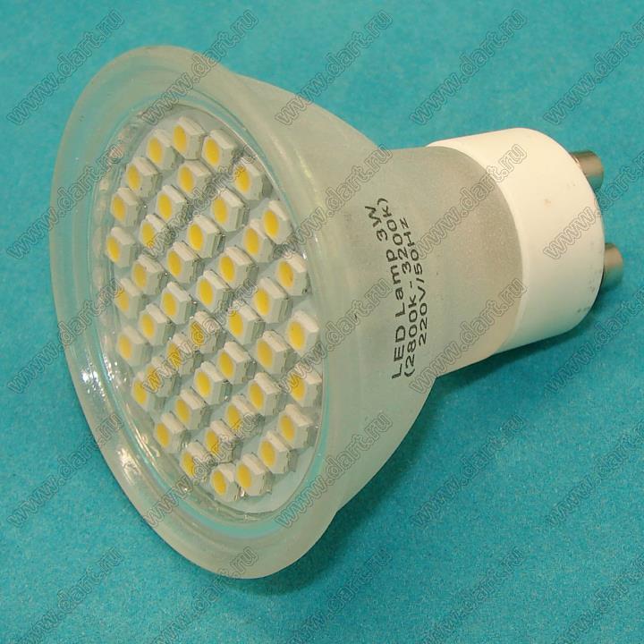 Лампа светодиодная; GU10; 44LEDs; Uп=AC100V-240V 50Hz; P=3Вт; белый теплый