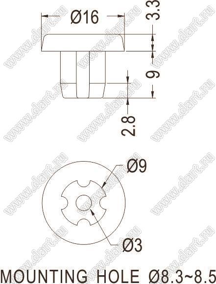 Ножка приборная под защелку в шасси; 16,0x3,3мм; резина; черный