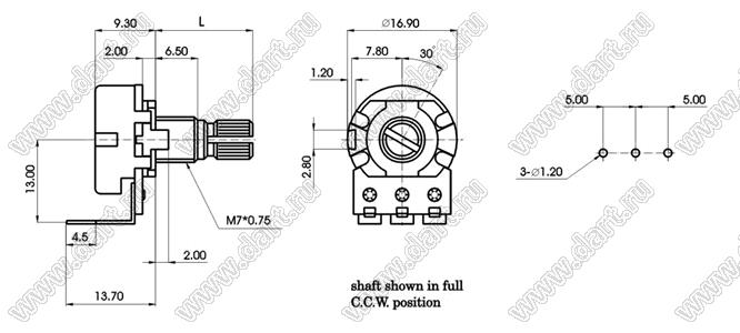 Каталог > Электронные компоненты, радиодетали > Резисторы > Резисторы переменные (потенциометры) > Роторные > 16 мм > R1615N-LD1-B503K