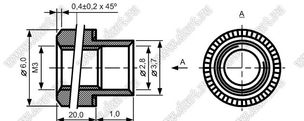 Каталог > Фурнитура для электронных устройств > Крепеж металлический (метизы) и пластиковый > Втулки резьбовые развальцовочные (бонки) > Втулки резьбовые развальцовочные (бонки) сквозные > BONR-М3D6H20Z-1