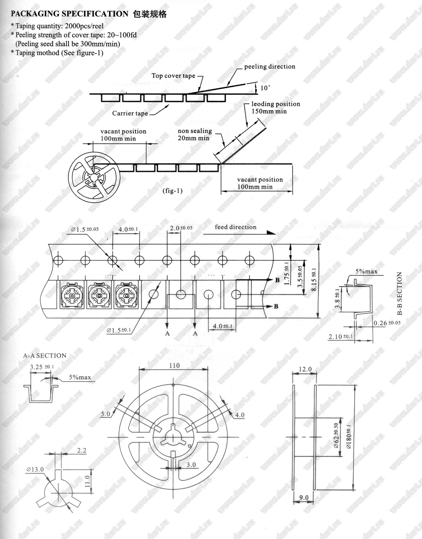 Каталог > Электронные компоненты, радиодетали > Резисторы > Резисторы подстроечные > Резисторы подстроечные SMD (для поверхностного монтажа) > C3306 серия > C3306B-104