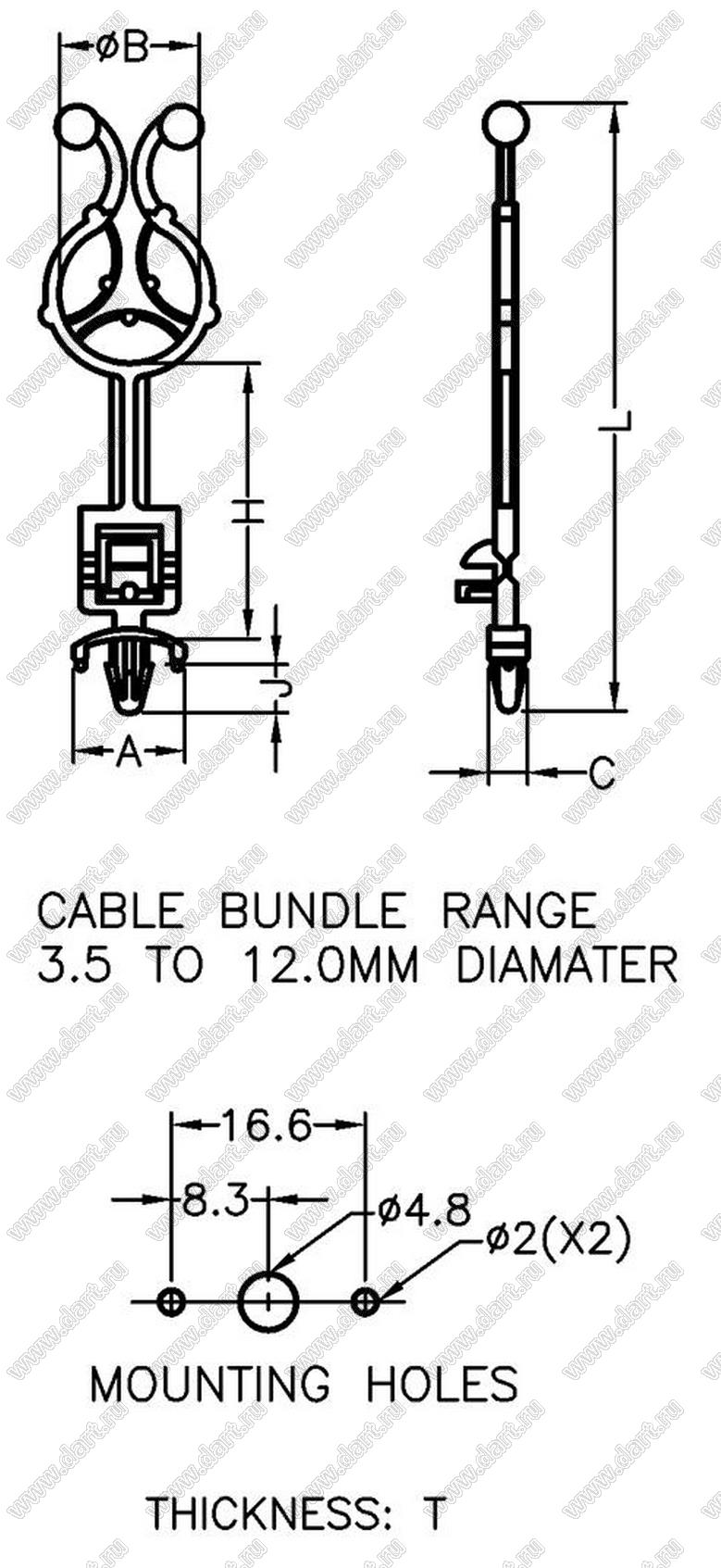 Каталог > Фурнитура для электронных устройств > Крепеж проводов и кабелей > Зажимы проводов с фиксацией в панель на защелках > Прочее > THFA-1