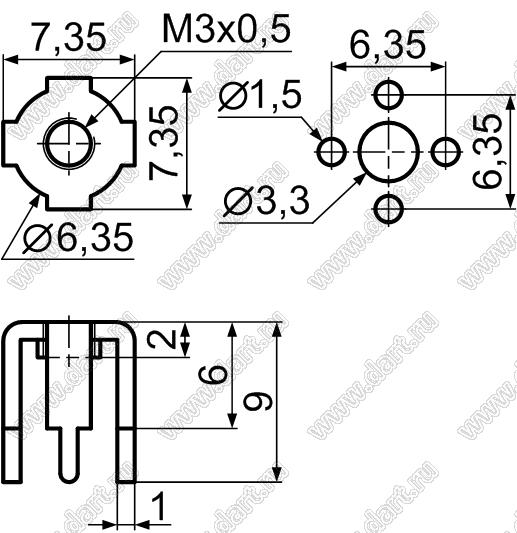 Каталог > Фурнитура для электронных устройств > Терминалы для печатных плат > Терминалы винтовые для пайки в печатную плату > PCB-49(M3)