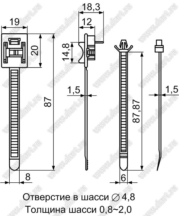 Каталог > Фурнитура для электронных устройств > Крепеж проводов и кабелей > Зажимы проводов с фиксацией в панель на защелках > SWPL серия, тип 3 > SWPL-21H