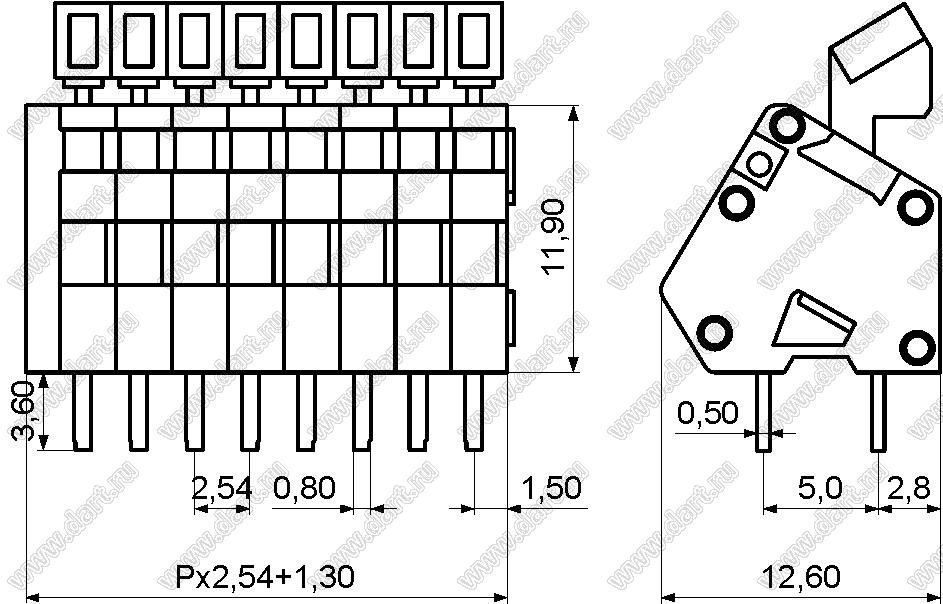 Каталог > Электронные компоненты, радиодетали > Клеммники (колодки клеммные) > Клеммники нажимные безвинтовые для монтажа в отверстия печатных плат > Клеммники нажимные безвинтовые (шаг 2,54 мм) > KF240-2.54 (DG240-2.54) серия > KF240-2.54-01P-11