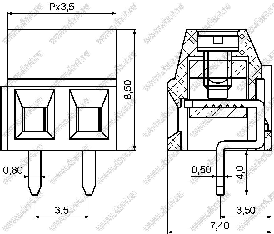 Каталог > Электронные компоненты, радиодетали > Клеммники (колодки клеммные) > Клеммники винтовые для монтажа в отверстия печатных плат > Винтовые клеммники (шаг 3,50 мм) > KF128L-3.5 серия > KF128L-3.5-03P-14